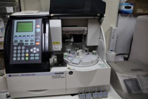 血液化学検査を行うための機械で、今までは1検体ずつ一般的な検査で20分程かかっていましたが、新しい機械だと5検体同時に検査出来て、一般的な検査で10分程で結果が出るようになりました!